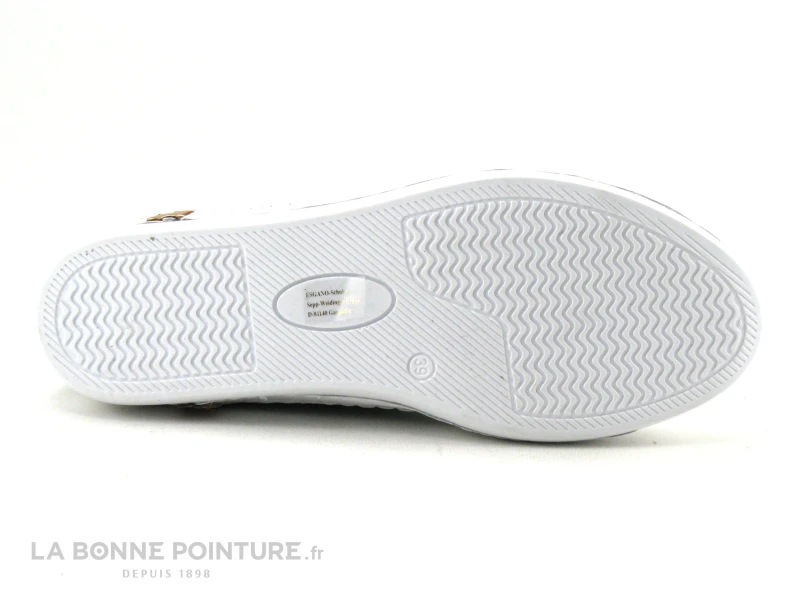 Cette basket basse Femme Andrea Conti est en cuir vert aspect froissé, avec la pointe et le pourtour en cuir blanc.