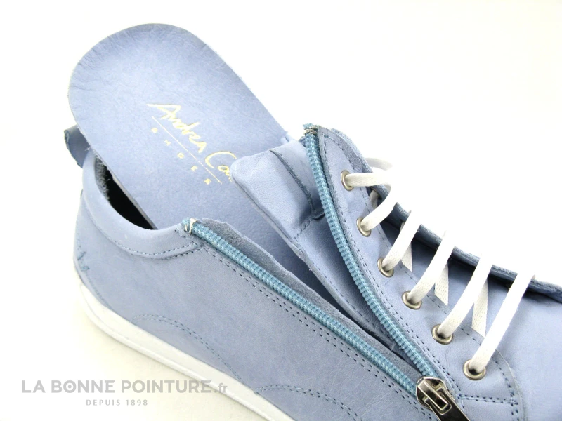 Cette belle basket basse Femme Andrea Conti 0063612-821 est en cuir souple bleu clair, légèrement nuancé.