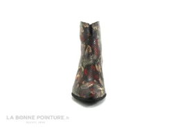 Cette chaussure basse Femme est en cuir velouté multicolore, aux reflets argentés et vernis.