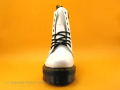 Le lacet rond noir traverse efficacement 3 œillets pour fermer la chaussure noire Dr Martens Homme / Femme.