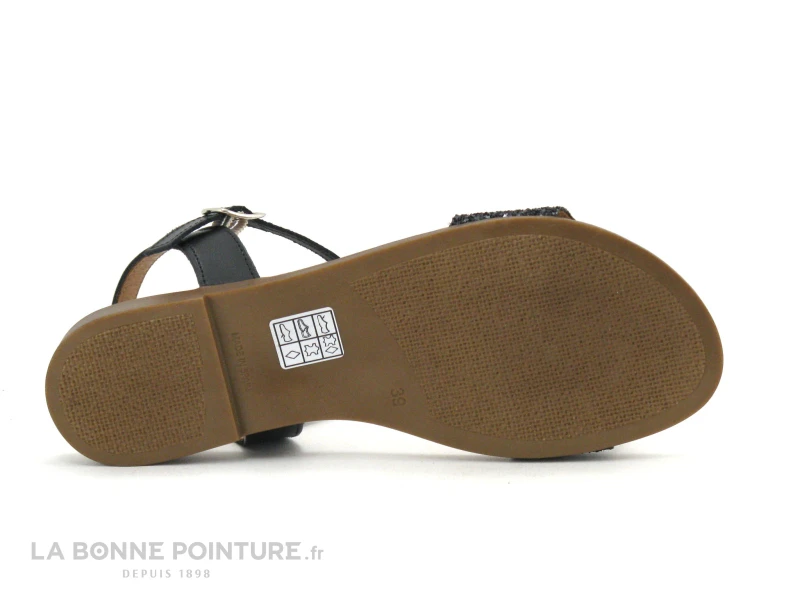 Effet pieds nus, cuir noir et paillettes pour ces ravissants nu-pieds Femme Eva Frutos 7190 !