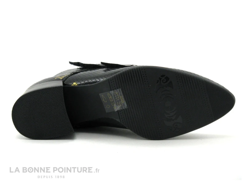 Les bottines Femme en cuir noir verni aspect reptile Fugitive Bahem, des boots chics et tendance Femme avec brides à scrach qui vont faire des heureuses !