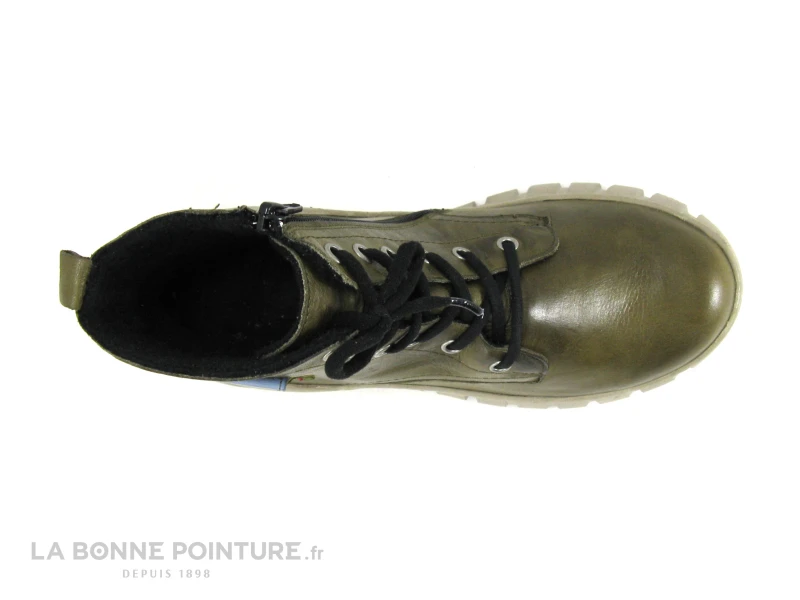 Fermeture rapide de la chaussure montante kaki Femme avec le zip sur l’intérieur.