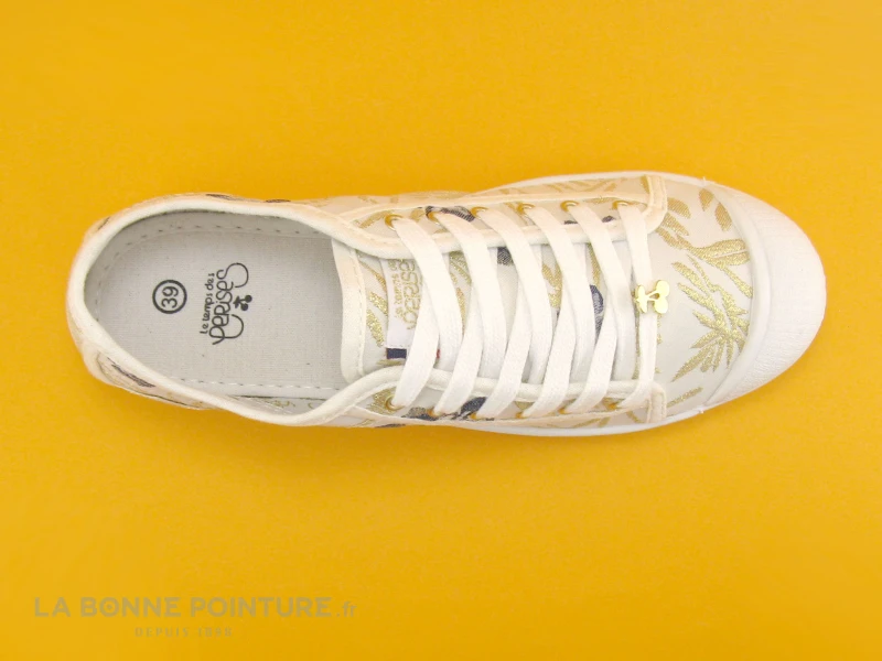 Des petites feuilles dorées sur un fond blanc cassé pour ces jolies tennis Le Temps des Cerises Basic Chiba !