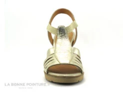 La bride salomé qui habille le dessus du pied est est finement découpée au centre, comme la bride à velcro et la bride arrière de la chaussure d’été Mam’Zelle.