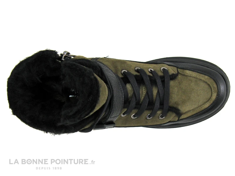 Les chaussures montantes Femme kaki et noires Mam’Zelle Poula, des boots Femme chics, mode et grand confort avec intĂ©rieur chaud Ă ne pas laisser passer !