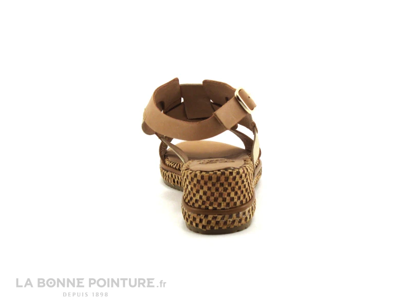 Cette sandale Femme est composĂ©e de brides assemblĂ©es et superposĂ©es aux tons de marron cognac et de bronze / or mĂ©tallisĂ©, avec des petits clous dorĂ©s sur l’avant et sur les cĂ´tĂ©s.