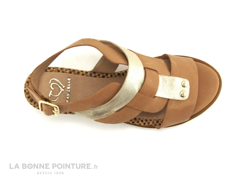 On aime le mariage rĂ©ussi d’un cuir marron naturel et d’un cuir velours mĂ©tallisĂ© avec ce superbe nu-pieds Mam’Zelle Seduc !