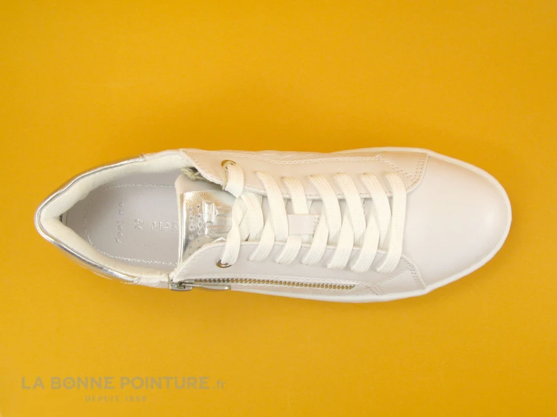 Fermeture rapide des sneakers blanches Marco Tozzi 2-23718-20 avec la fermeture éclair latérale, métallique et argentée.
