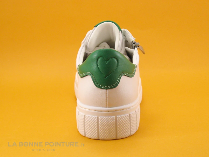 Ces sneakers Femme Marco Tozzi sont en simili cuir blanc, avec des empiècements verts à l’arrière et sur la languette.