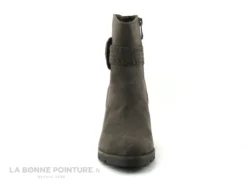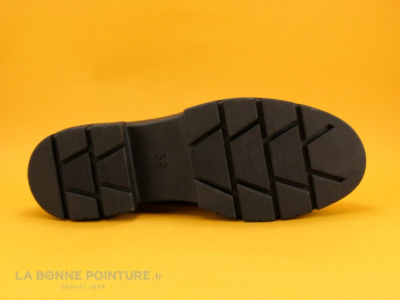 La semelle de marche Ă©paisse caractĂ©rise Ă merveille le modèle avec son aspect crantĂ© et son talon d’environ 5 cm.