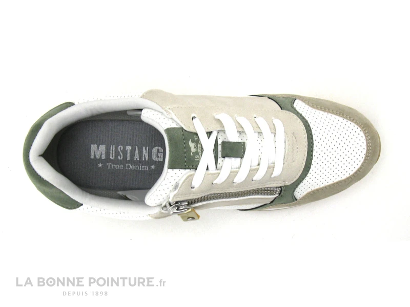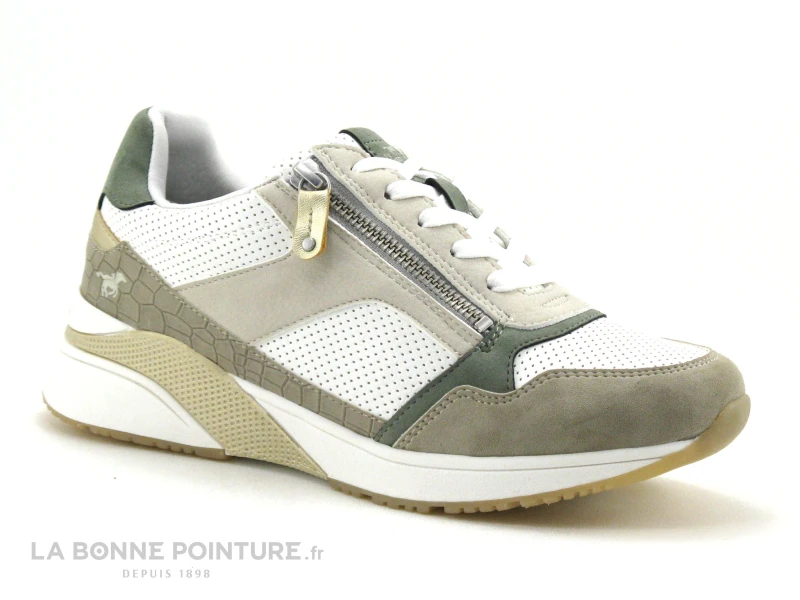 Les baskets Femme Mustang 1358-308-41 beiges, blanches et kaki, des sneakers compensées qui allient mode et confort au très bon rapport qualité / prix !