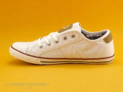 La languette de la tennis en toile Femme Mustang est traversĂ©e par un Ă©lastique invisible, qui permet d’enfiler rapidement la basket. Les oeillets argentĂ©s sont juste dĂ©coratifs.