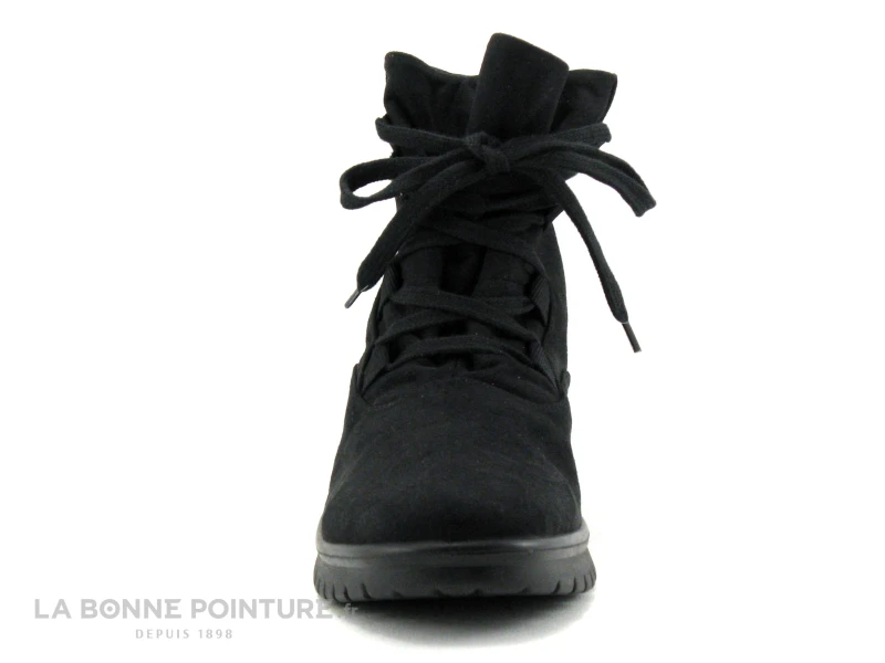 Ces boots d’hiver Femme sont en amaretta noir, un textile résistant au bel aspect velouté.